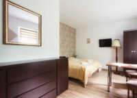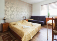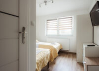 Zakwaterowanie jest możliwe w dwóch rodzajach: pokojach bez aneksu kuchennego lub pokojach z aneksem kuchennym (czajnik elektryczny, płytę grzewcza, garnek, patelnia oraz stolik z krzesłami do spożycia posiłków). Każdy pokój posiada nowoczesne, komfortowe wyposażenie, własną łazienkę z toaletą i natryskiem, telewizję oraz bezpłatny internet WIFI. Posiadamy windę co umożliwia przyjęcie gości także z wózkami inwalidzkimi. Każdy szczegół wystroju pokoi jak i całego obiektu został zaprojektowany z myślą o wygodzie i komforcie naszych gości.